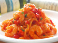 カポナータはパプリカ、玉葱、なす等のお野菜をじっくりソテーして甘みを引き出した後、ぷりぷりの海老を8本加えてトマトソースで煮込みます。